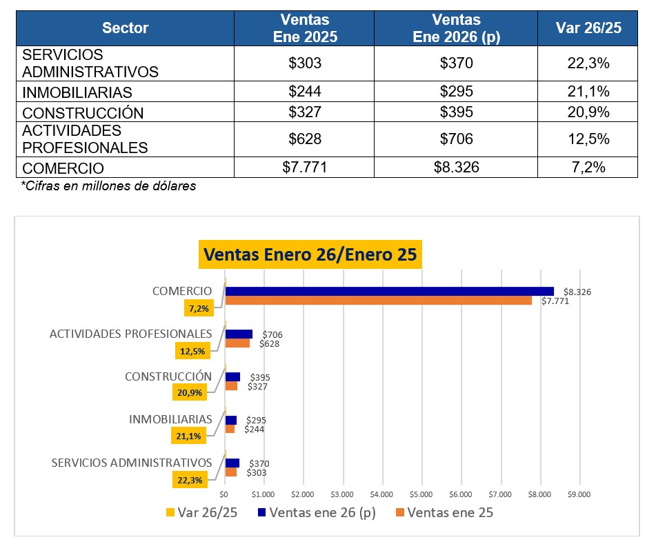 Esto significa que alcanzarían los USD 20.391 millones, frente a los USD 19.097 millones registrados en el mismo mes del año anterior. Los datos proyectados muestran un desempeño favorable en varios sectores de la economía durante el mes de enero: