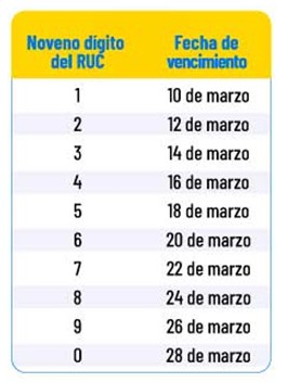 Las personas naturales del Régimen General, que no pertenecen al Régimen RIMPE, deben presentar la declaración del Impuesto a la Renta 2025 en marzo de 2026, de acuerdo con el noveno dígito de la cédula o del RUC: