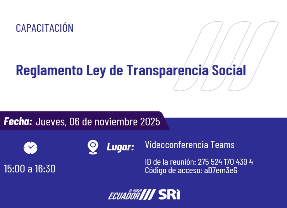 El jueves 6 de noviembre de 2025, el Servicio de Rentas Internas (SRI) llevó a cabo un foro virtual dirigido a los Grandes Contribuyentes, convocados formalmente con el objetivo de informar sobre las particularidades del proceso de distribución de dividendos, conforme a las nuevas disposiciones establecidas en el Reglamento a la Ley de Transparencia Social.
