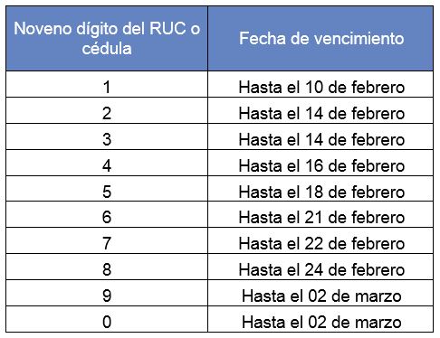 Nota: Las fechas de este calendario ya consideran los traslados respectivos cuando la fecha de vencimiento original coincide con días de descanso obligatorio o feriados.